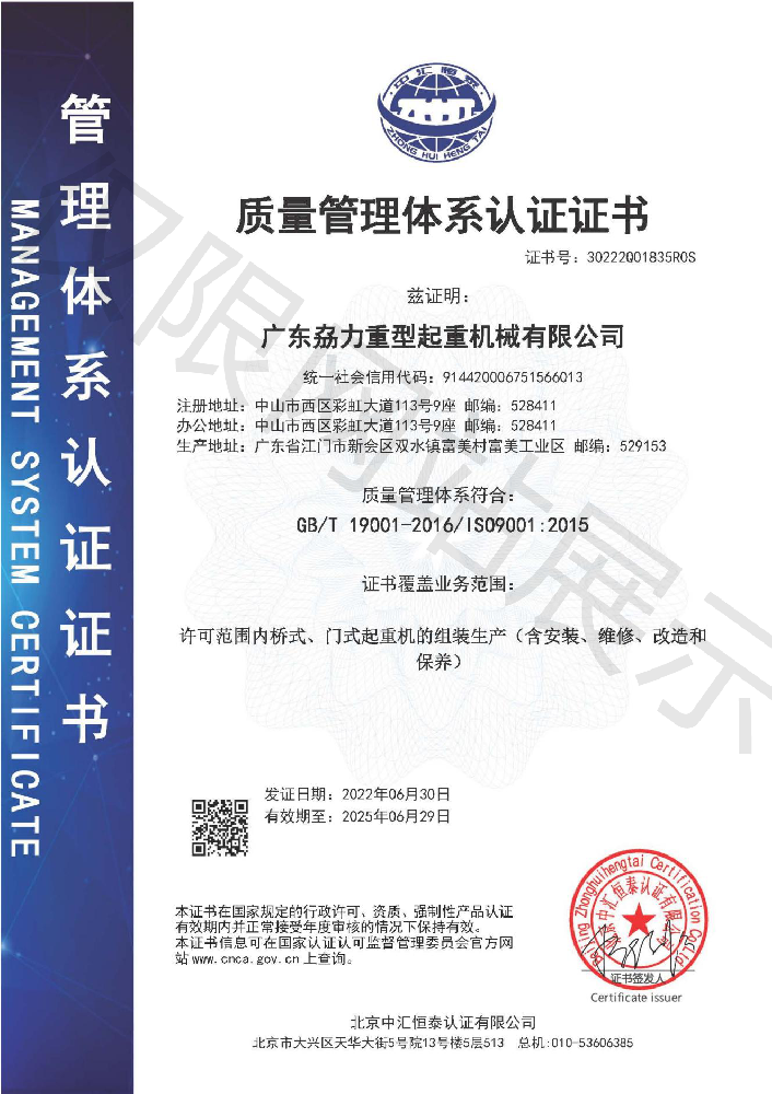 質(zhì)量管理體系認證證書